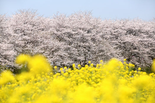 菜の花と桜並木