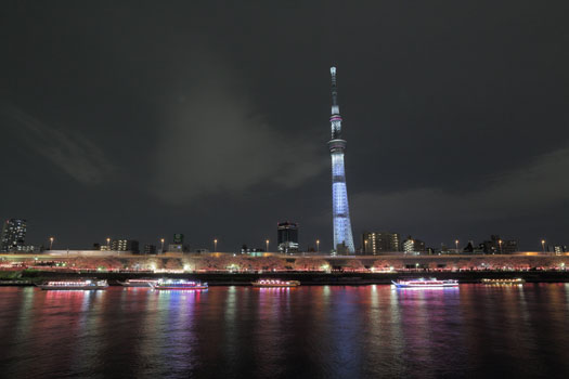 夜桜と屋形船と東京スカイツリー「咲」